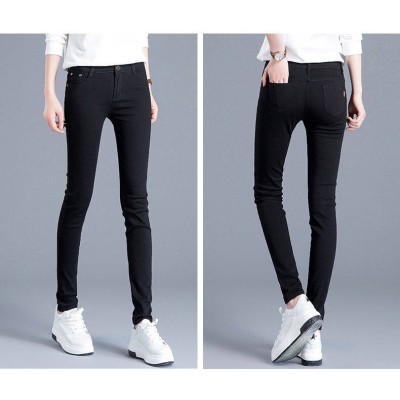 牛仔裤韩国女式高腰全配修身L弹力新镶边铅笔女式牛仔裤潮流