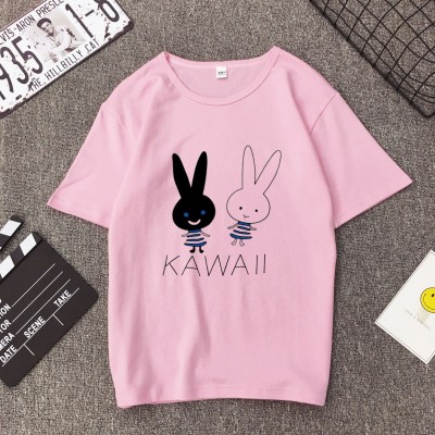 白色T恤女士优雅短袖T恤卡通兔印花圆领T恤轻便女士T恤